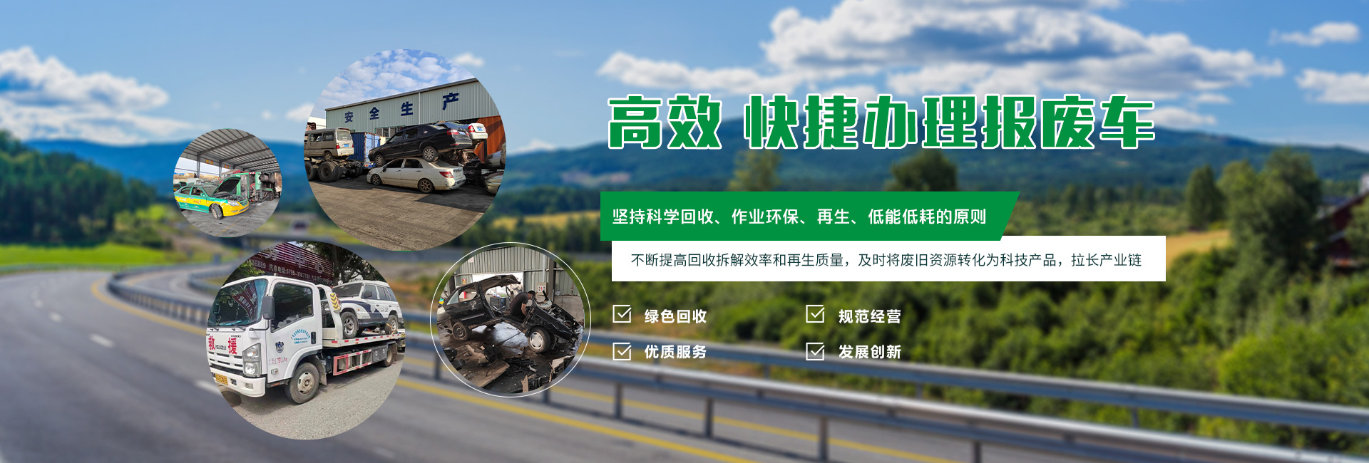 本公司長期回收報廢汽車,報廢貨車,黃標車,工程機械等,辦理本地,異地車輛報廢注銷業務。? 動車所有人應當在報廢期滿前將機動車交售給機動車回收企業,由機動車回收企業將報廢的機動車登記證書、號牌、行駛證交公安機關交通管理部門注銷。機動車所有人逾期不辦理注銷登記的,公安機關交通管理部門應當公告該機動車登記證書、號牌、行駛證作廢。 報廢電話:4008-565-122